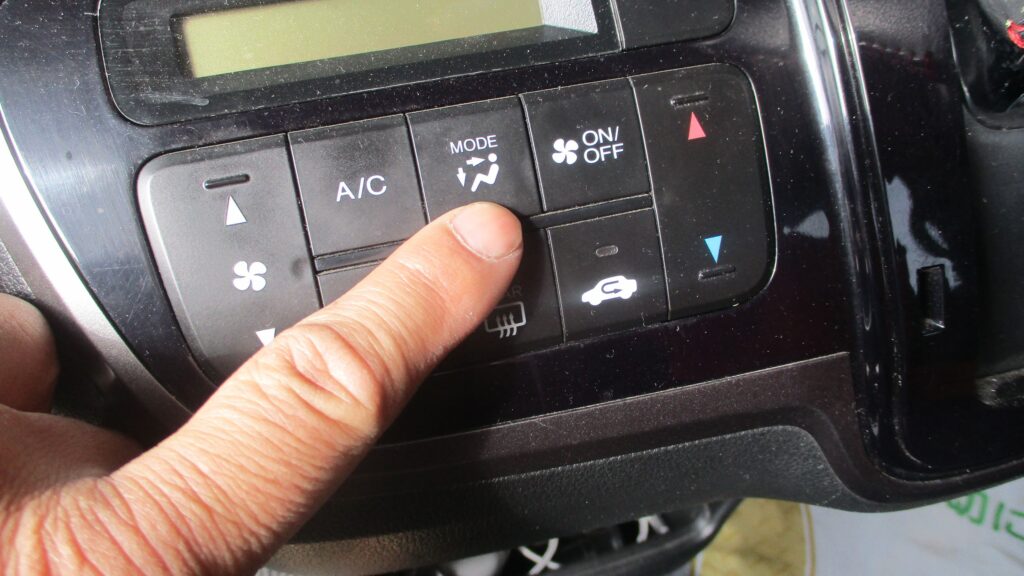 エアコンパネルのMODE切り替えスイッチを押しても、表示は切り替わるが実際に風の出てくる場所が切り替わらないという症状でした。