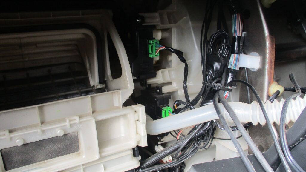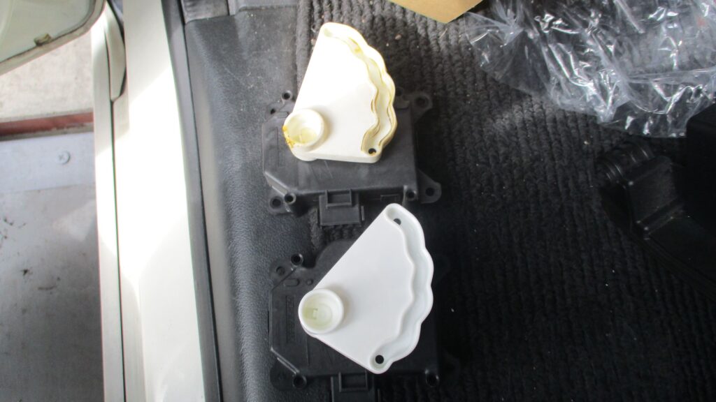 オートエアコンですので吹き出し口の切り替えはマニュアルエアコンのワイヤー式ではなくモーターを使用して切り替えする電動式です。こちらの切り替えモーターの動作不良により吹き出し口の切り替えができなくなっていました。